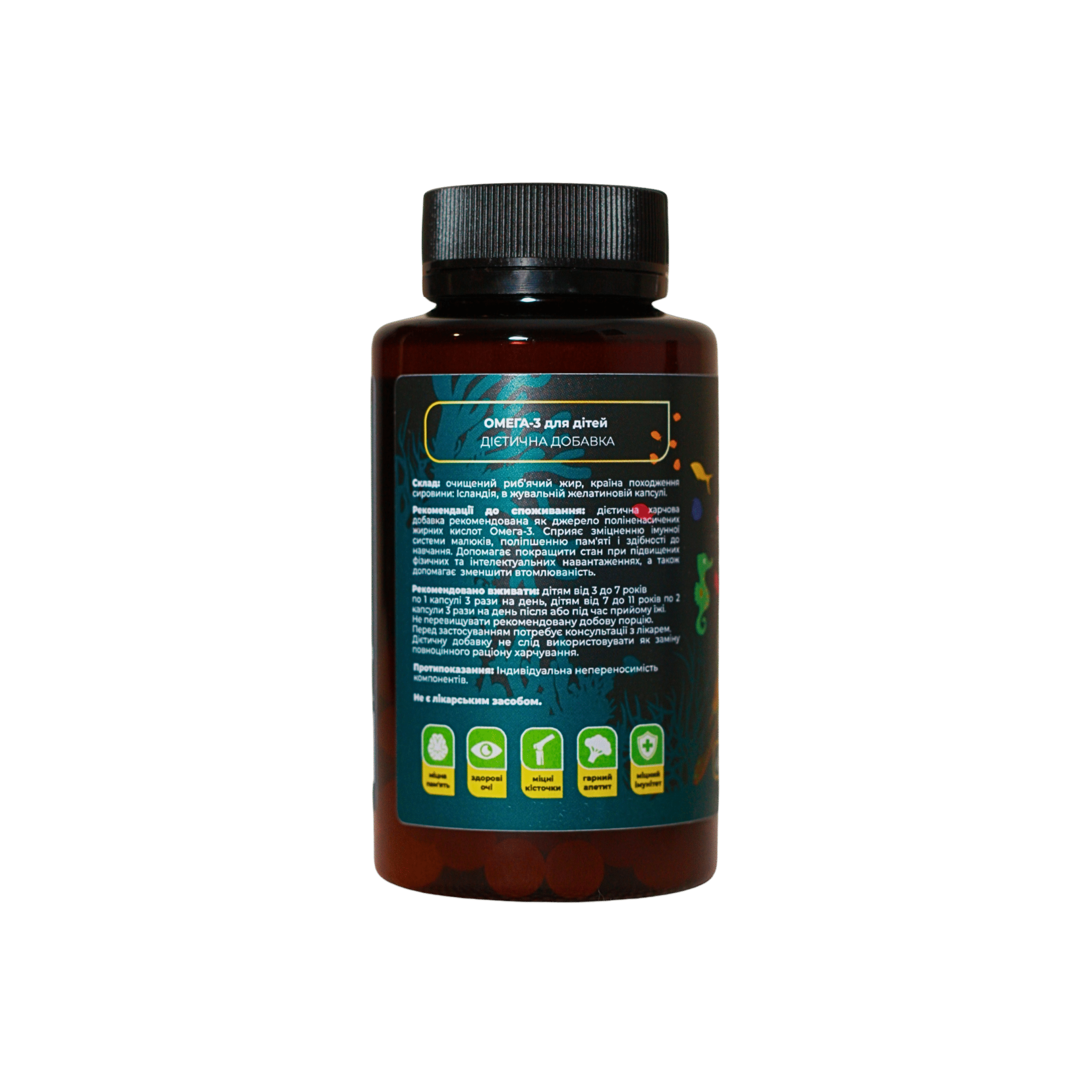 Дані добавки рекомендовано вживати діткам як джерело ОМЕГА-3, вироблені в м’якій жувальній желатиновій капсулі, БЕЗ ДОДАВАННЯ БАРВНИКІВ. Діткам дуже смачно та корисно.